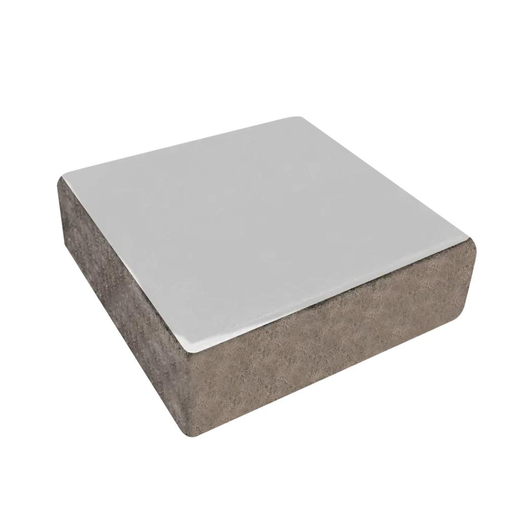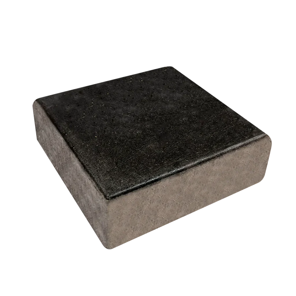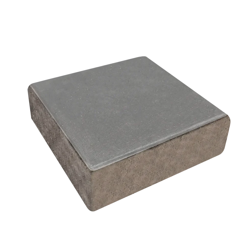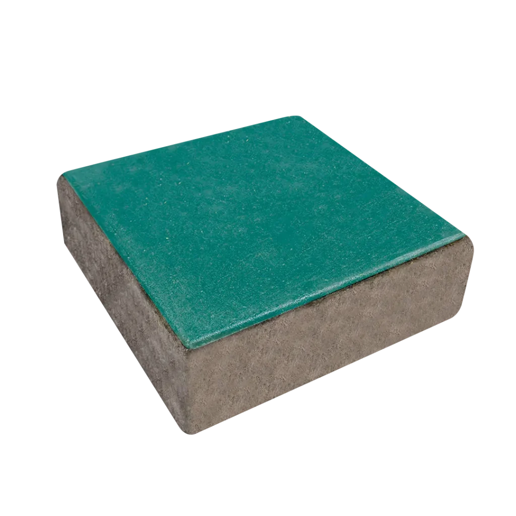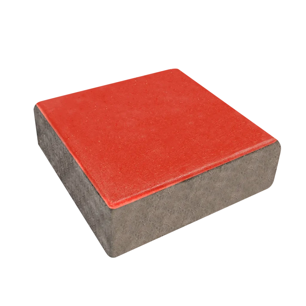 Pieza cuadrada prefabricada en concreto vibro compactado con bicapa, usado para la construcción de pisos y pavimentos para tráfico peatonal y vehicular liviano (solo accesos a predio). Buena alternativa para ser utilizada en espacios públicos al ser de fácil instalación y resistente.